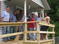 Pictured left to right are Shelby Day, Sam McGhee, Doug Brown, Tom Waddail, Phillip Roberts, Willie Branom, Walter Jarvis, Alfred Martin, and homeowner Yvonne Brown. Not pictured is Tim Sanders.